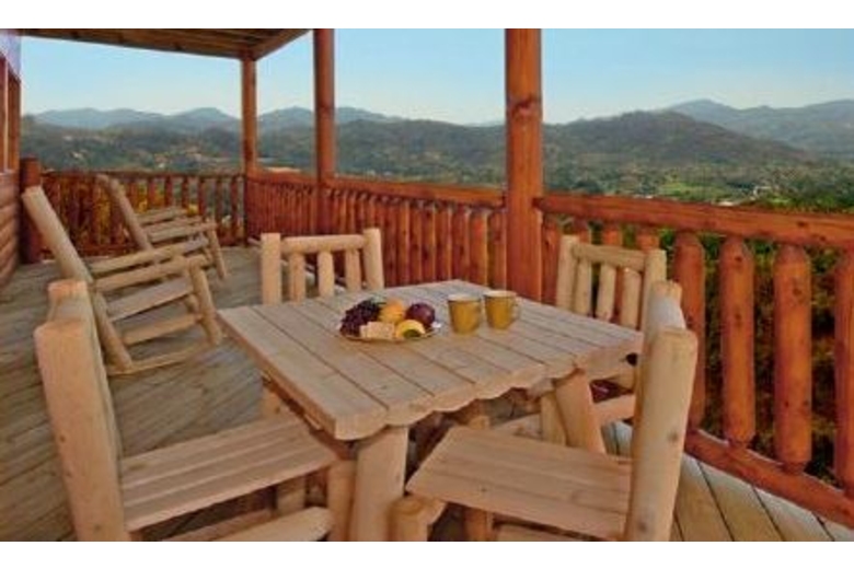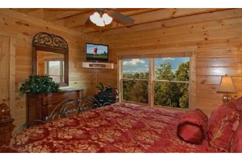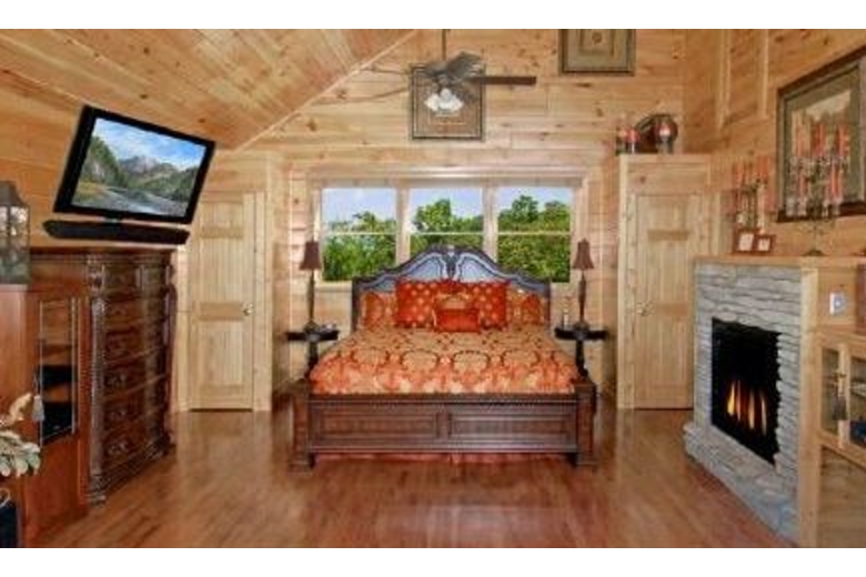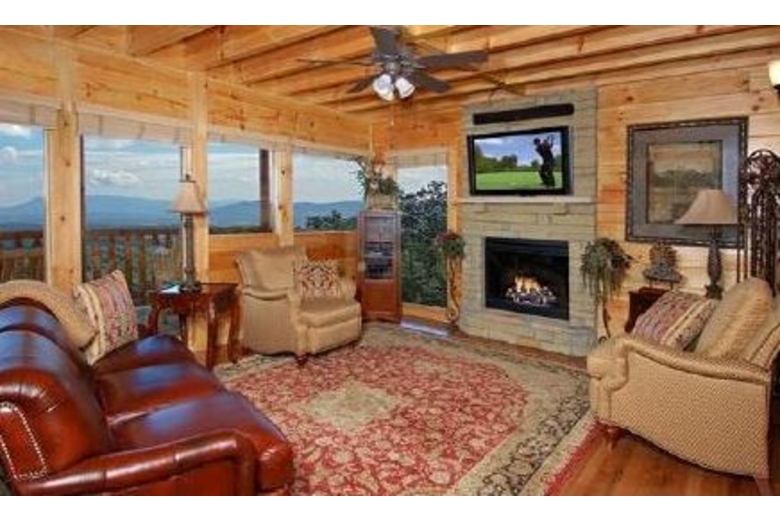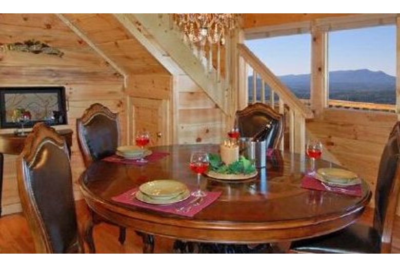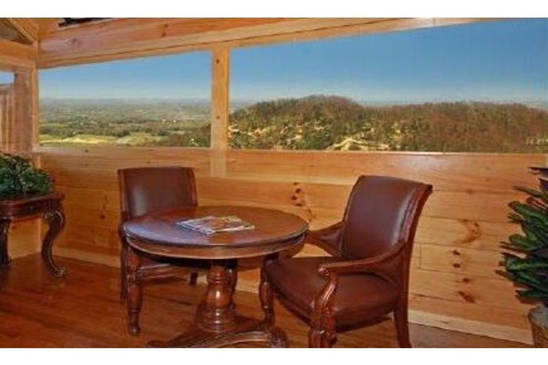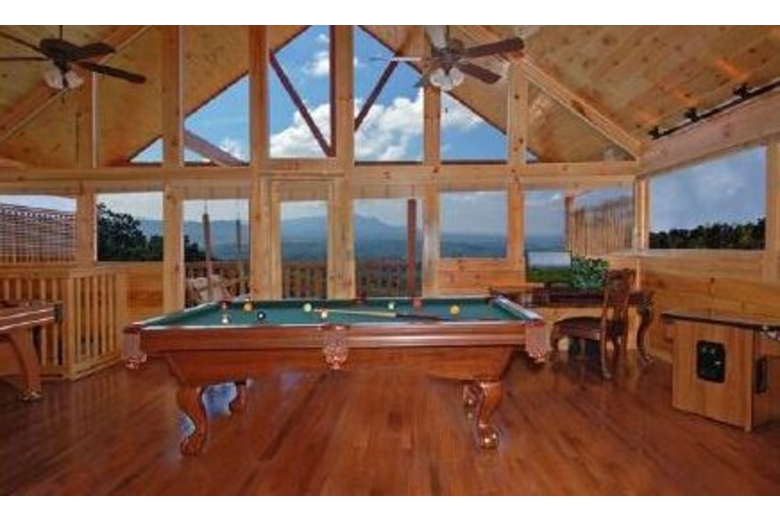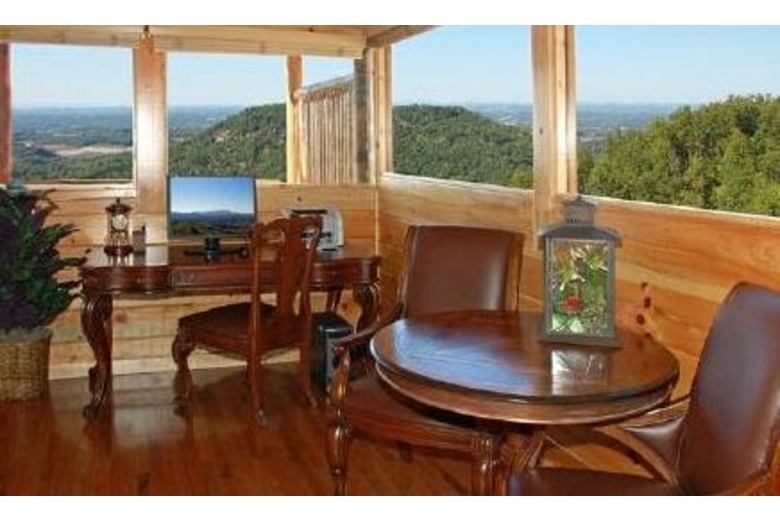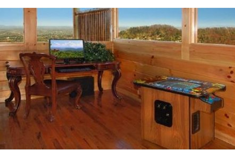 Open the door to Over the Top and step into sumptuous splendor. No expense has been spared to surround you in warmth and luxury. Enjoy watching movies on the two 42" Hitachi Director Series HD Plasma TVs or listening to your favorite music on the surround sound system featuring Polk Audio's cutting-edge surround bar technology powered by Denon receivers and 1000 watt sub woofers.The furnishings in this cabin are in a league of their own. A majority of the furniture is by Hooker, including an in-laid table top design in the dining table and bedroom end tables. Accent tables are from Heckman and the lamps in the cabin are all by Kichler. The butter-soft couch is by Lexington. You have two custom recliners for your relaxation in the living room.The master bedroom and loft bedroom are equipped with Kings down pillow top king size mattresses. We also have provided body jets and a rain shower head in the master bath shower for an exhilarating experience. Soak indoors in the Jacuzzi tub after a long day seeing the sights of Pigeon Forge, or enjoy the four-person hot tub on the rear deck over 60 feet off the ground! When you have finished, wrap yourself in a heated towel from one of the heated towel racks and sit down by one of the two fireplaces.We have provided you with a business center including a Dell PC and 19” screen, fax/printer/scanner, and high-speed Internet service so you can connect with the outside world. If you prefer your own laptop, the Wi-Fi Access will allow multiple users to connect at once.If you like games, Over the Top is for you. There is a tournament quality 8' Brunswick billiards table for serious players. If video games are your preference, sit down at our one or two player video arcade cocktail table and enjoy timeless favorites like Pac-Man, Frogger and Space Invaders as well as over 30 other classic arcade games. If you like a little faster action there is a full-size, arcade level Air Hockey table available. A Play station II is also available so bring your favorite games!!!Surrounding Description