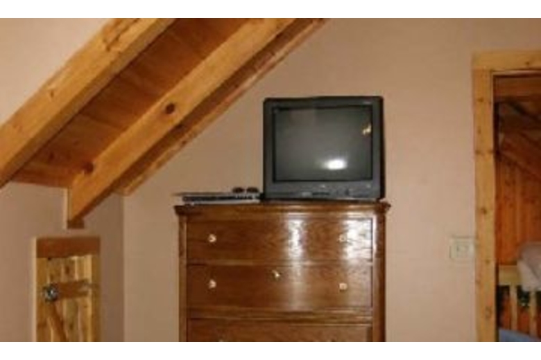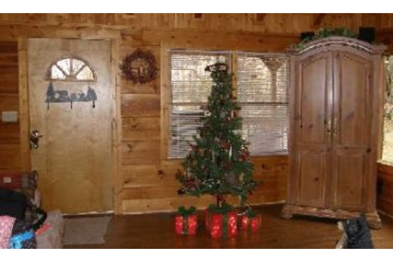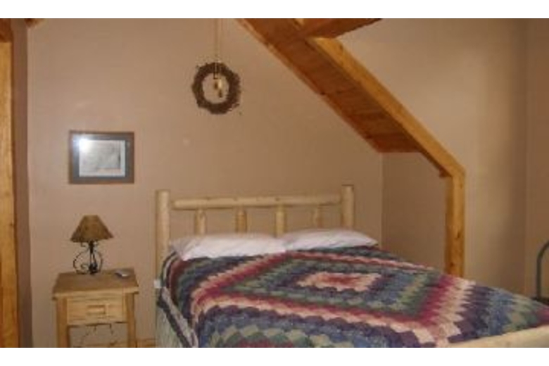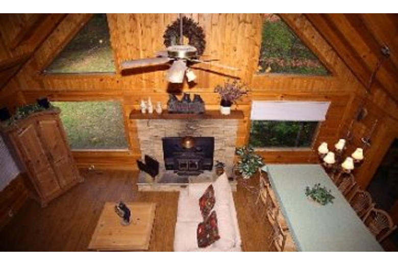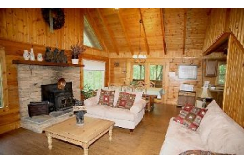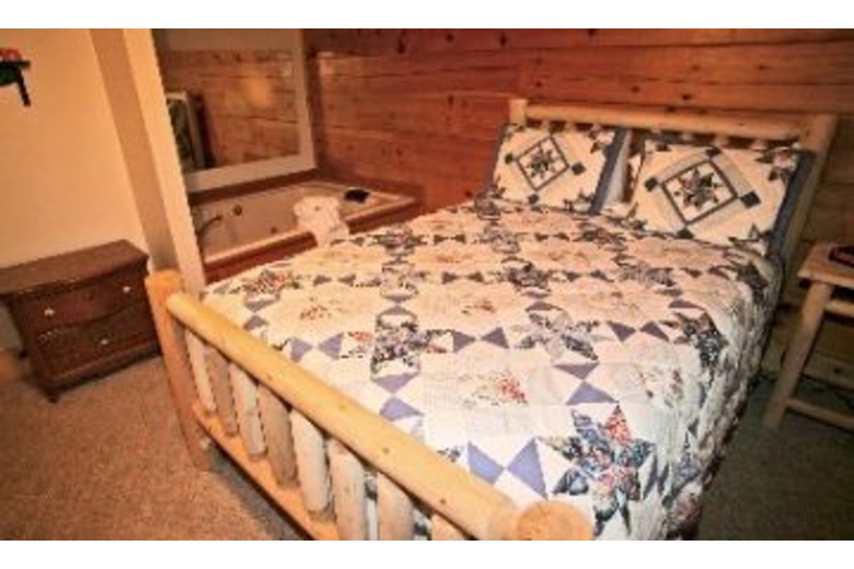 With two bedrooms and two bathrooms, this log cabin can comfortably accommodate up to six people. Each room is fully equipped with comfortable furnishings and nice amenities. Save money and enjoy home cooking from the well appointed kitchen. There is a spacious dining area that can accommodate eight people. The living room is open with vaulted ceilings and beautiful picture windows. Get cozy next to the wood burning fireplace or enjoy watching a movie from the HD flat screened TV. The master bedroom is downstairs and has a queen sized bed with a log frame, this room is also furnished with a large jacuzzi whirpool tub and flat screened TV. The upstairs bedroom is also furnished with wood frame queen sized bed and flat screened TV with a DVD player. For more sleeping space there is a queen sized sofa sleeper. Enjoy fresh mountain breeze on the deck from the swing or while relaxing in the hot tub. More amenities include cable for all televisions, free high speed internet and long distance in the Continental U.S., an air hockey table, gas grill, and a washer and dryer. This home is pet friendly.Surrounding Description