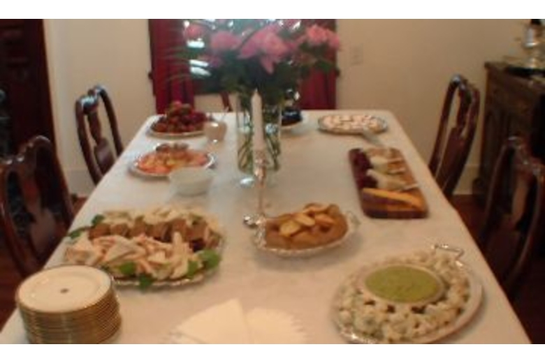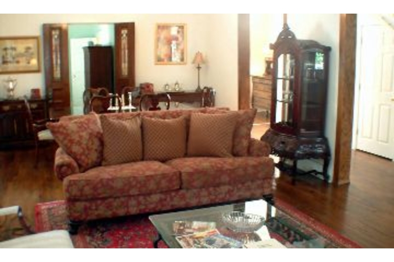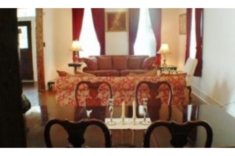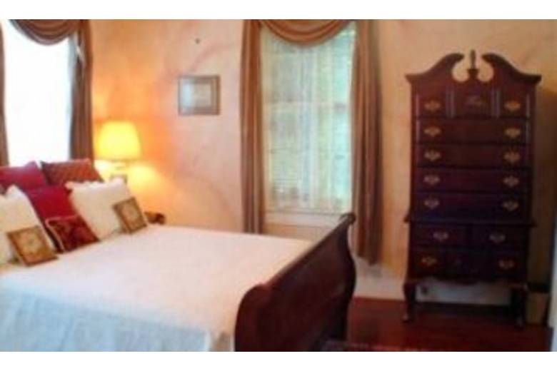 The house itself has over 1,800 sq. ft. which include 3 bedrooms, 2 baths, a living room, dining room and kitchen. The TV/sitting room is convertable to a third bedroom (with a queen sleeper sofa + 2" memory foam pad)to comfortably sleep an additional 2 guests for a total of 6 guests. Another full bath is adjacent to the TV/sitting room.A well lit "Great Room" has two large plush sofas and fine period compatible furniture making it perfect for relaxation and entertainment. The dining room is part of the living/dining area and features a Queen Anne table with two leaves, pads, and six chairs. A china cabinet, side board, and bureau full of linen tablecloths and napkins are situated near the dining table. A silver tea and coffee service is also included. Wonderful art is present throughout the house and adds immeasurable pleasure to all guests.A delightful and cheery kitchen has been completely furnished with two sets of china dishes, each with 8 place settings. The silverware is a silver plated service for 12. It is also stocked with quality pots and pans, and all other items necessary to cook and serve any meal. A toaster, microwave and coffee maker are included. The kitchen table comfortably seats four adults.The house has 2 full bedrooms upstairs, each with queen-sized beds. There is a large full-sized bath upstairs with a wonderful tub for bubble bath fans.Surrounding Description