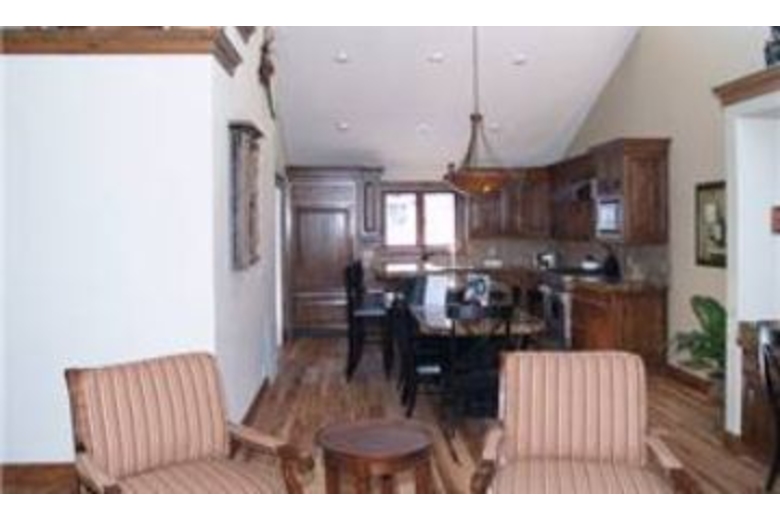 This is a three bedroom, three bath townhouse that has been newly remodeled for the 2008 ski season. The fully equipped kitchen features large glass french doors which leads to the private hot tub. The three level kitchen island is covered in granite and offers seating for three at the breakfast bar and an additional five at the lower level dining bar. In the master bedroom you will find a king size bed and private bath. The second bedroom has a queen bed and there are two twin beds in the third bedroom. The living area features a gas fireplace, flat screen TV, and a queen size sofa bed.Surrounding Description