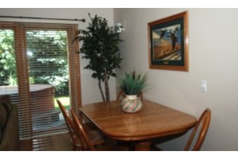 This beautiful unit offers a rustic feel with all the comforts of your own home. It features a warm gas fireplace perfect for curling up in front of on the cold winter evenings, a private hot tub and wireless Internet. There are two bedrooms and two and one half bathrooms and it will comfortably accommodate up to six people. The master bedroom has a large king size bed and the second bedroom has two double beds. Additionally, there is a fully equipped kitchen and a grill perfect for a nice evening barbecue.Surrounding Description