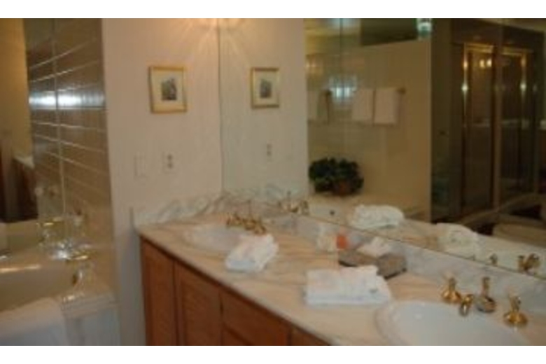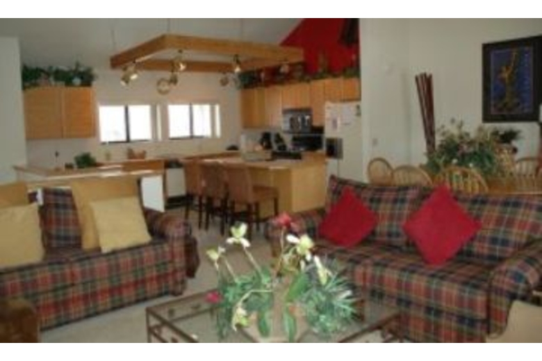 The floor plan in this unit is open and spacious; the kitchen is large and has an island that seats three. The appliances are nice as is the decorating. The living area has a vaulted ceiling and the furniture is cozy. There is a rock fireplace and a queen sleeper sofa. The master bedroom has a queen bed and the second bedroom boasts two twin beds. This unit has a private washer and dryer along with a private outdoor hot tub.Surrounding Description