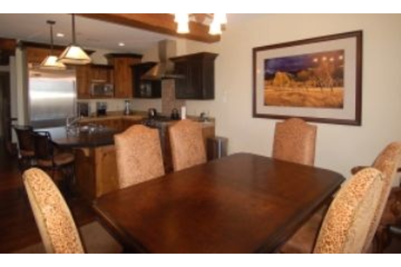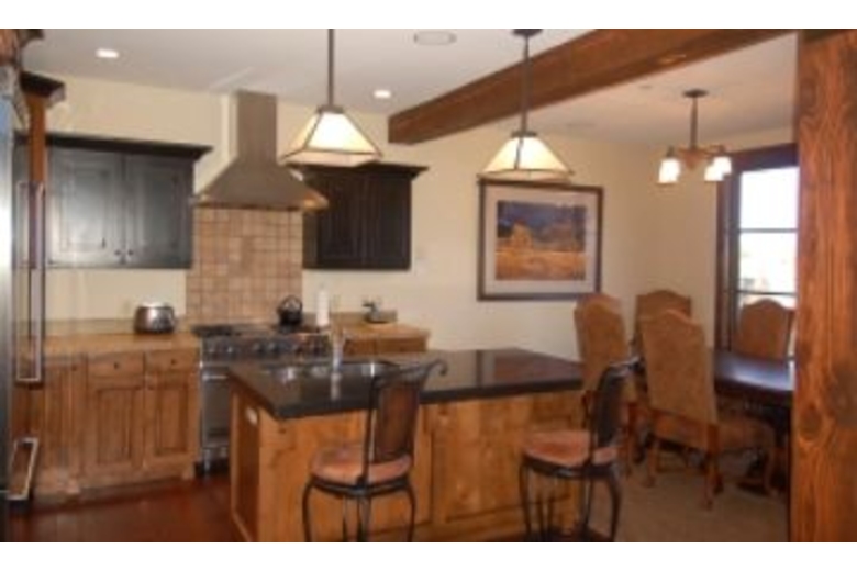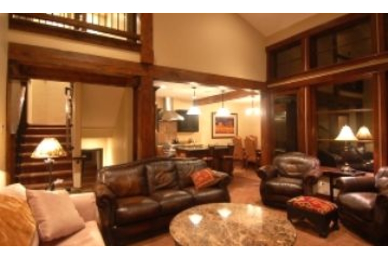 This fabulous Townhome boasts 2500 sq. ft. of luxurious living space with custom designed furnishings and amenities found throughout. Platinum rated, it has three bedrooms and three and a half bathrooms and can accommodates six guests. It features a gourmet kitchen, fully equipped, a beautiful dining table and chairs set, a spacious living room with vaulted ceilings, TV and gas fireplace, a private washer/dryer and wireless internet access. There is a home theater room which offers a flat screen TV, audio system with iPod/MP3 and XM Satellite radio and cozy gas fireplace - a great room for at home entertainment. Bedding consists of a king in the master suite, a queen in the guest room and two twin beds in the third room (converts to a king bed upon request). Enjoy breath taking scenery from the balcony or admire the star studded sky at night.Surrounding Description