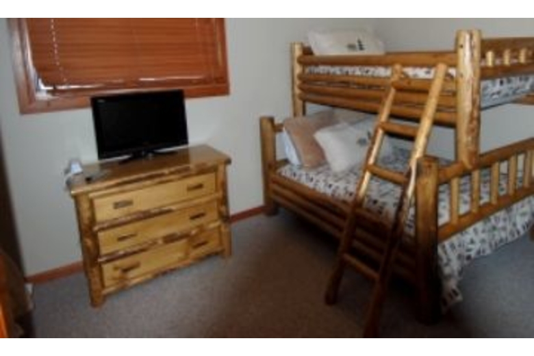 This three bedroom, three and a half bath townhome offers tasteful mountain decor and comfortable furnishings. The dining area has a table with three chairs and two benches connected to the wall. The fully equipped kitchen has an ice maker, dishwasher, microwave and tile flooring. The living area has a wood-burning fireplace, TV and double sofa sleeper. The first bedroom has a ceiling fan, king bed and another double sofa sleeper. The second bedroom comes with a queen bed and TV. In the third bedroom there is a bunk bed (two twins), TV and a daybed with a trundle.Surrounding Description
