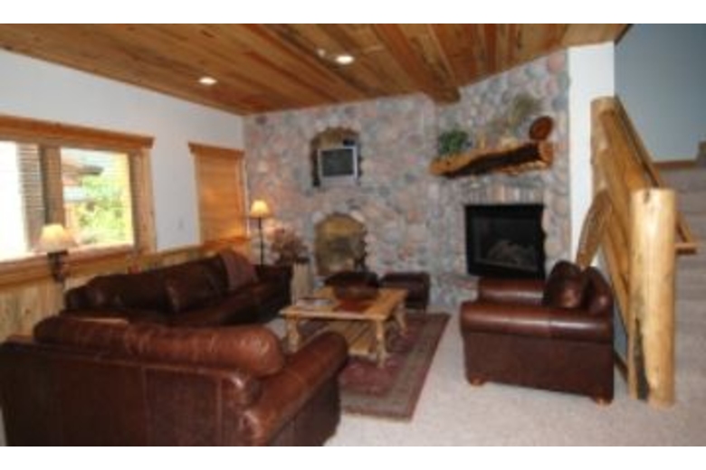 This townhome offers three bedrooms, two and a half baths and can sleep up to ten people comfortably. There is a fully equipped kitchen with an ice maker, blender, microwave, coffee maker and dishwasher. The dining area has five chairs, a table plus a bench. The living area has two double sofa sleepers, a TV and gas fireplace. The first bedroom has a king bed and TV. The second bedroom comes with a TV and queen bed. The third bedroom also has a queen bed.Surrounding Description