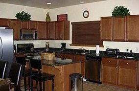 This four bedroom, four and a half bath townhome features a living area with a TV. There is a loft with a TV and double sofa sleeper for two extra guests. There is a fully equipped kitchen with a coffee maker, blender, microwave, refrigerator and freezer. The dining area has a table and eight chairs. The first bedroom has a king bed, gas fireplace and TV. The second bedroom also has a TV and king bed. In the third bedroom there is another king bed and TV. The fourth bedroom comes with two bunk beds (each with two twin beds) along with a TV.Surrounding Description