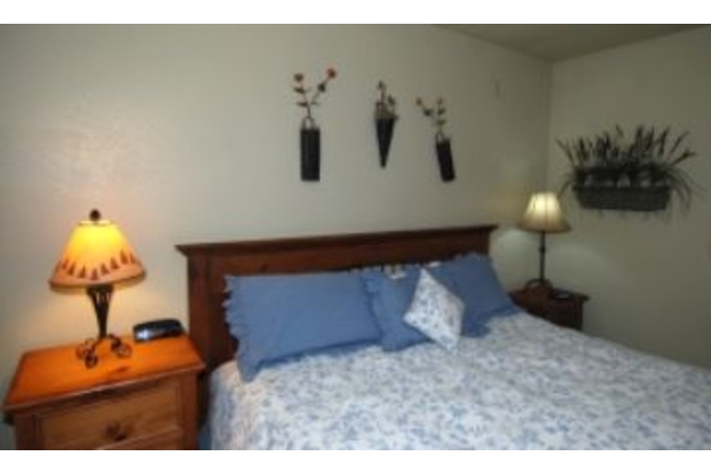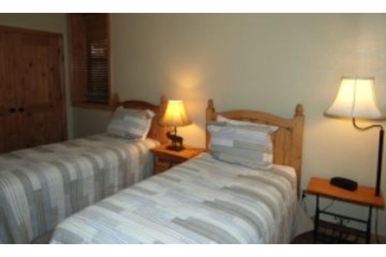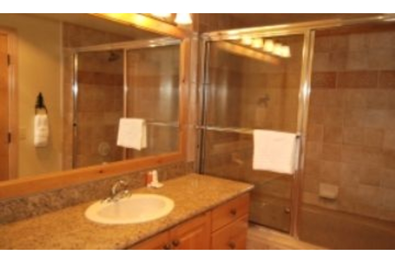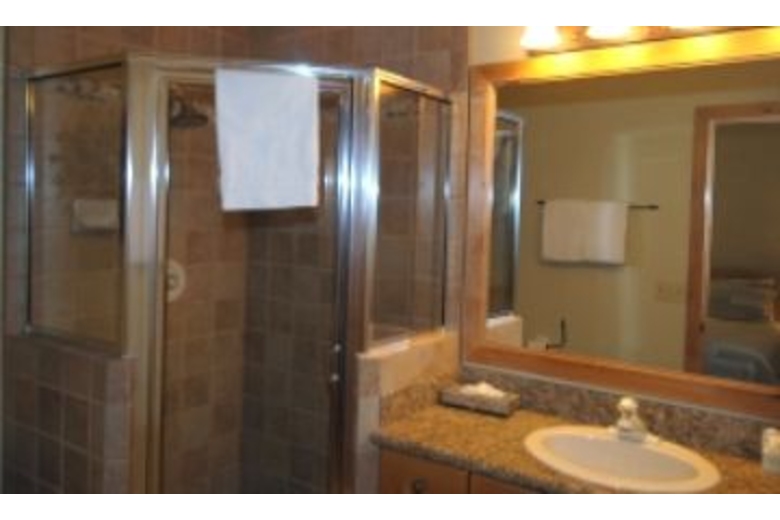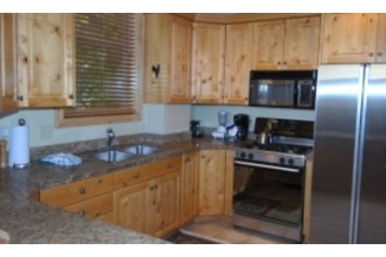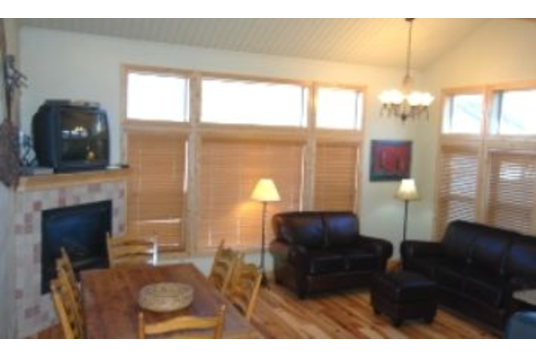 The master bedroom is located downstairs and has a king bed, a gas fireplace, and a master bathroom. The master bedroom has access to the private hot tub. The living area has high ceilings, a fireplace, and leather sofas. The kitchen has stainless steel appliances and great counter tops. This home has three TV's, a DVD player and two VCR's.Surrounding Description