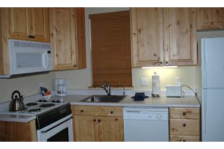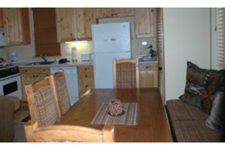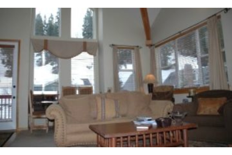 This great three bedroom, two bathroom gold-rated private home offers guests deluxe accommodations that are well appointed with upscale furniture and beautiful decor. The deck has a great view of the mountains and a private hot tub to soak in after skiing all day. The living room has a fireplace, an entertainment theater and a cozy couch. The kitchen has knotted pine cupboards and all the appliances you will need to make a great meal. The dining table has bench seating for three and chairs for four. The bedrooms have a special rustic touch with amazing decor and log beds.Surrounding Description