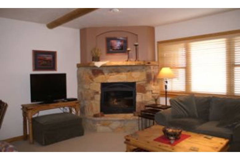 This townhome features two bedrooms and two bathrooms accommodating up to four people. The master bedroom has a queen sized bed and the second bedroom has two twin sized beds. Each bedroom contains a TV and there is a gas fireplace in the lovely master bedroom and in the living room. The living room also contains a 42" flat screen TV with a DVD player and a stereo. The kitchen is fully equipped and provides a dining table with seating for four people. On the patio there is a table and gas grill, a great place to enjoy a home made meal during warmer months. More amenities include high speed wireless internet, a portable room air conditioner, a stackable washer and dryer, and a garage parking for one car.Surrounding Description