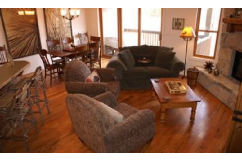 This three bedroom and three and a half bathroom townhome has beautiful hardwood flooring, comfortable furnishings, and plenty of spacious living areas for a carefree vacation. There is a king in the master bedroom, a queen in the second bedroom, two twins in the third bedroom, and a sleeper sofa in the living area providing accommodations for up to eight guests. Features of this retreat include a flat screen TV, DVD player, VCR, CD player, a jetted tub in the master bathroom, a private washer and dryer, and wireless high speed Internet access. The kitchen is custom and fully equipped with everything you need to feel right at home during your stay. There is a dining table that has seating for all of your guests and there is a breakfast bar with an additional three bar stools. With two fireplaces to provide a warm ambiance, this townhome is fabulous.Surrounding Description