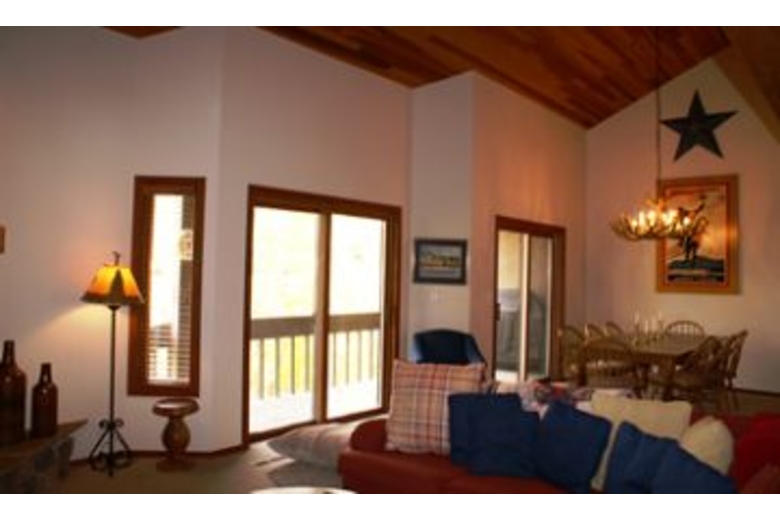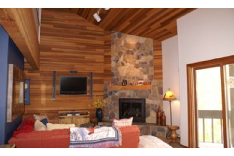This townhome has three bedrooms plus loft and three bathrooms. Two of the bedrooms have king sized beds, the third bedroom has two twin beds, and the loft has two twin sized beds. Each bedroom is furnished with a flat screen cable TV. This townhome is beautifully furnished with vaulted ceilings. The living room is comfortably furnished and contains a stone wood burning fireplace and flat screen 27" cable TV. The kitchen is large and fully equipped. More amenities include a washer and dryer, gas barbecue grill, and a two car garage.Surrounding Description