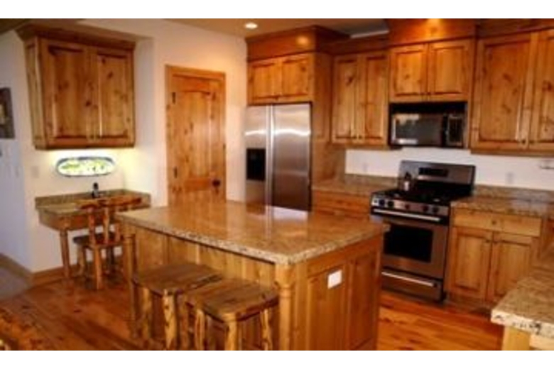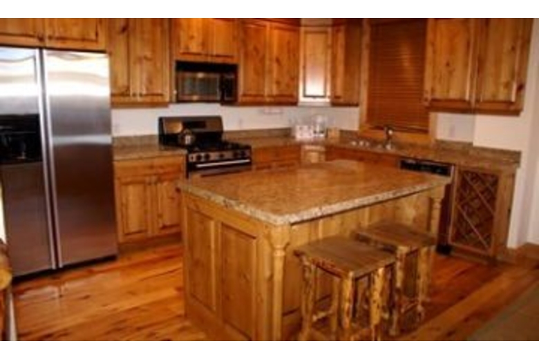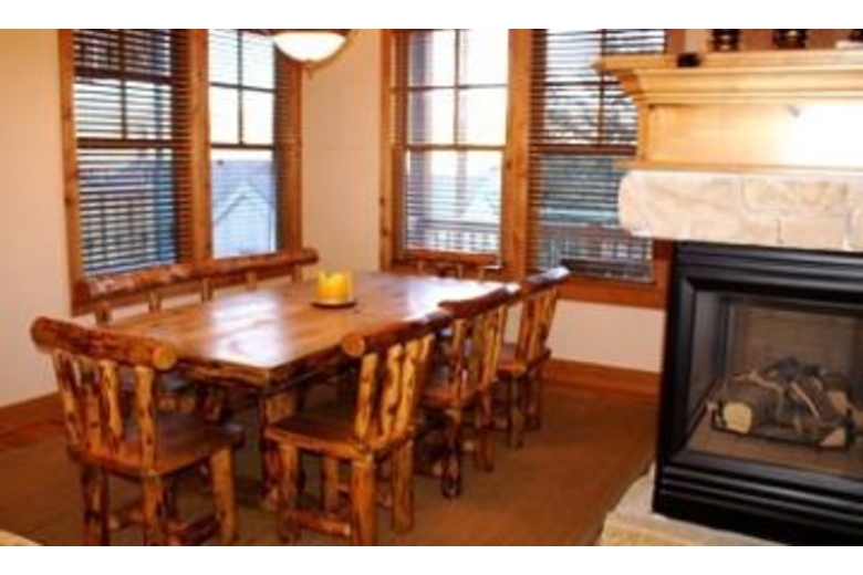 The kitchen boasts stainless steel appliances, granite countertops, and beautiful cabinetry and wood floors. The dining table is unique and offers seating for eight and there is additional seating at the bar. The living area boasts a sectional sofa, huge windows and a double sided gas fireplace. The living room also offers a twenty seven inch TV, VCR, DVD player, and stereo with CD player. This home offers sleeping accommodations for nine guests with a king bed, a queen bed, a twin bunk bed and the last bedroom offers two twin beds and one twin trundle.Surrounding Description
