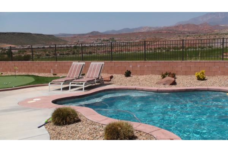 Perfect for family getaways and a delight for the golfers, this St. George Utah vacation rental by owner is situated right on the championship golf course of Coral Canyon with beautiful views of the fourteenth fairway. This house offers stunning views of the rolls of green feilds converging in the distant mountains.