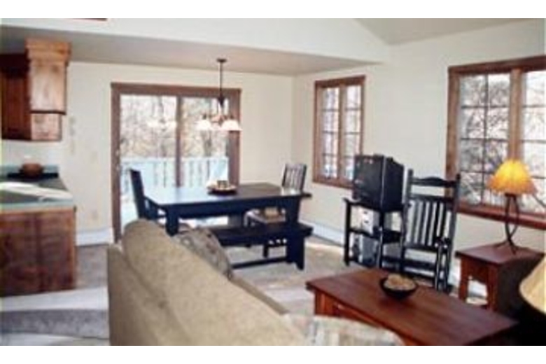 Upon entering, the main level will greet you with warm lighting, soft coloring, and extra attention to classic Vermont details.There is a fully equipped kitchen to make your stay a restful and convenient one. There is also a dining area with seating for 8 and a living area with a tv and gas fireplace. There are two bedrooms on the main floor the first has a queen sized bed, the second a set of bunk beds and both bedrooms are serviced by a full bath. On the lower level, you will find a second seating area, as well as the access to the hot tub. After a day on the slopes, relax and unwind in this outdoor hot tub, located right on the deck. This classic Vermont home is sure to be a treat for any family or small group.The lower level living area comes with a tv, dvd and vcr player, and a sofa sleeper. There is also a washer dryer just off the living area. The first bedroom on the lower level has 2 twin beds, the second has bunk beds with a queen bottom and a twin top. There is a full bath for the lower level as well.Surrounding Description