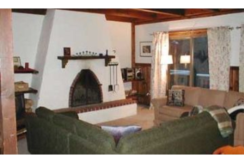 The open floor plan allows you to view the wood burning fireplace from both the living room and dining area. The kitchen is fully equipped. Each two-level townhouse unit features living/dining rooms with stucco-faced wood-burning fireplace. Other amenities include attic storage space, two decks and mountain views. Upstairs are the three bedrooms, a full bathroom and a sauna.Surrounding Description