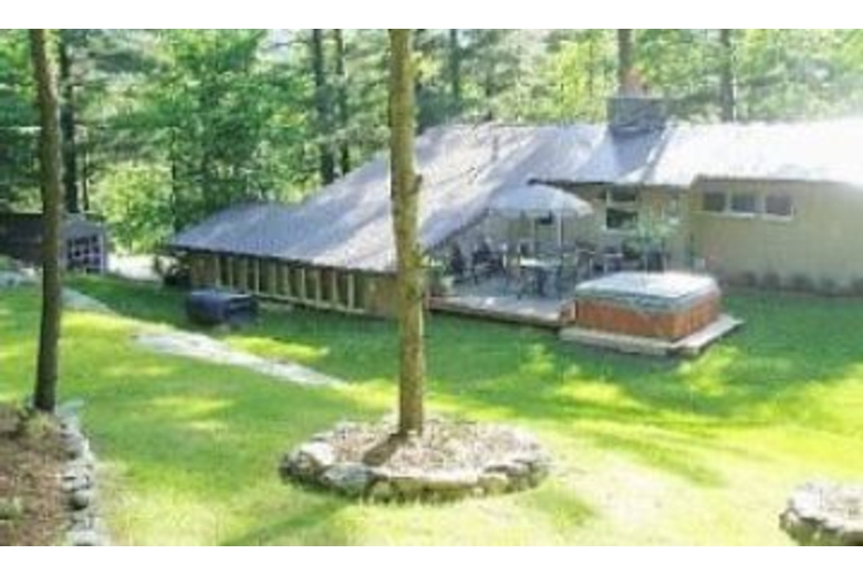 This four bedroom and three bath chalet sleeps ten guests comfortably with four queen beds and a sleeper sofa. The vaulted great room has a beautiful field stone, wood burning fireplace, wide plank pine flooring and comfortable, warm furnishings. You will appreciate the large kitchen and open space of the main floor. The grounds of this mountain vacation home have been well manicured and are the perfect setting for an after-ski soak in the outdoor hot tub.Surrounding Description