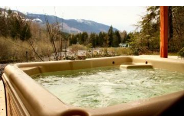 Enjoy a peaceful vacation with river and mountain views. Relax out in the hot tub and look out at the beautiful river with a mountain view in the background. This delightful home will sleep up to eight people giving you lots of room. With the serene atmosphere you’ve been looking for, this home is the perfect additional to your relaxing family getaway.