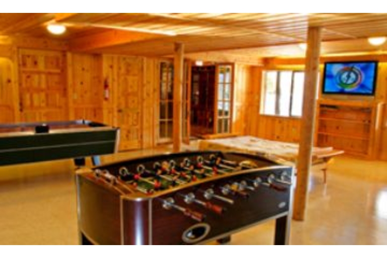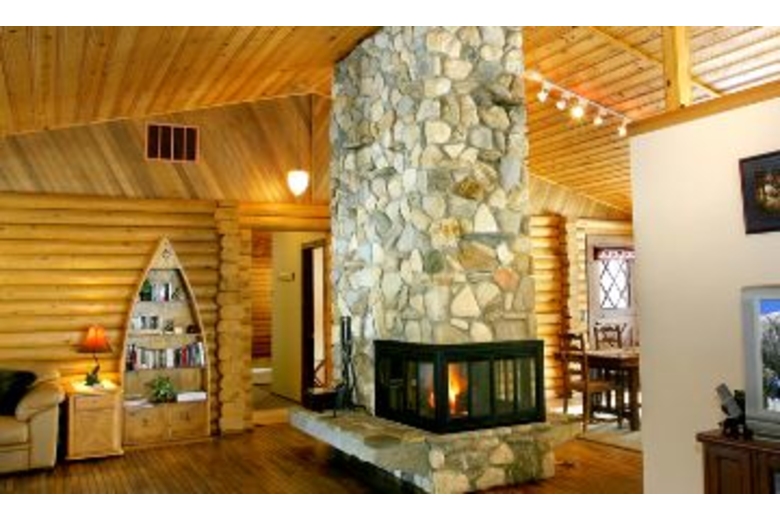 This spacious two level home spans 4,200 square feet offering comfortable accommodations for up to ten people. There are three bedrooms and three bathrooms. Each room is furnished with a queen sized bed and more sleeping space is provided with a sofa sleeper and a futon sleeper. The master bedroom has an en suite bathroom featuring a claw foot bathtub. The living area is nicely furnished, has a spacious layout and an amazing large stone wood burning fireplace. The fully equipped kitchen is beautiful with plenty of natural light and vaulted ceilings. A homemade meal can be easily prepared here and the nice dining table or countertop seating will compliment the meal. A game room features a large plasma TV, air hockey, and a foosball table. More amenities include parking for two cars, a gas barbecue, plenty of outdoor furniture, a washer/dryer, and satellite TV.Surrounding Description