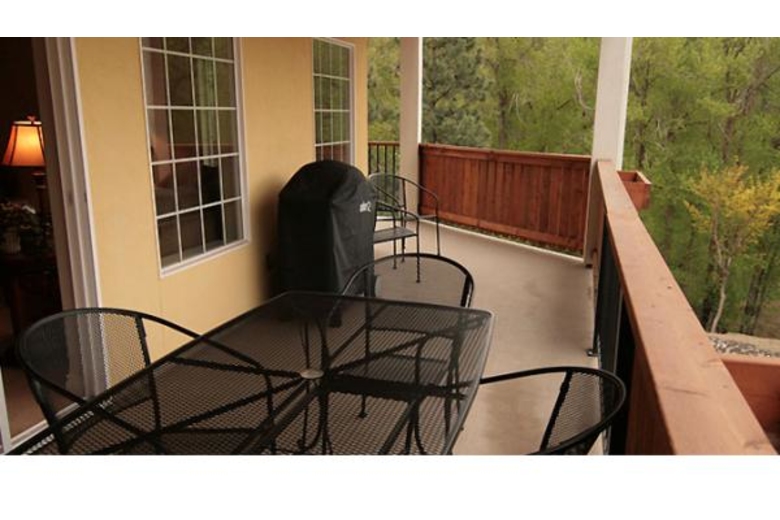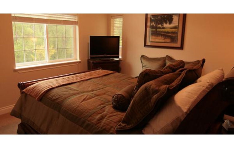 Discover how easy it is to enjoy a perfect vacation getaway that's close to home, yet so uniquely European in flavor that it seems a world apart. The Grand View Suite, located just a block from downtown Leavenworth in the brand new River Park Condos building, has all the European elegance and comfort you'd expect to find in Bavaria, in a gorgeous mountain setting that's only one block from the festivals and shops. There's just nothing like savoring your morning coffee on the wrap-around deck overlooking the breathtaking mountains while sounds of the rushing river calm and restore and the little village wakes around you. The Grand View Suite is a perfect place for your next stay in the Bavarian village. Tastefully furnished and decorated with elegant style, this two bedroom, 2 bath condo is fully equipped, and features the lovely earth tones of granite, tile and wood. The fully equipped kitchen, with granite counters and all new appliances, make meal-making a delight. A jacuzzi tub in the master bath is an amazing place to relax. Then, unwind with a movie on one of the big screen TV's, or enjoy a good book in front of the fire.