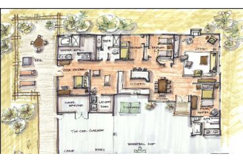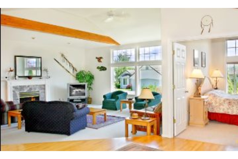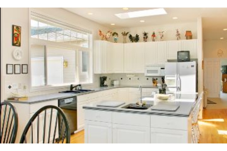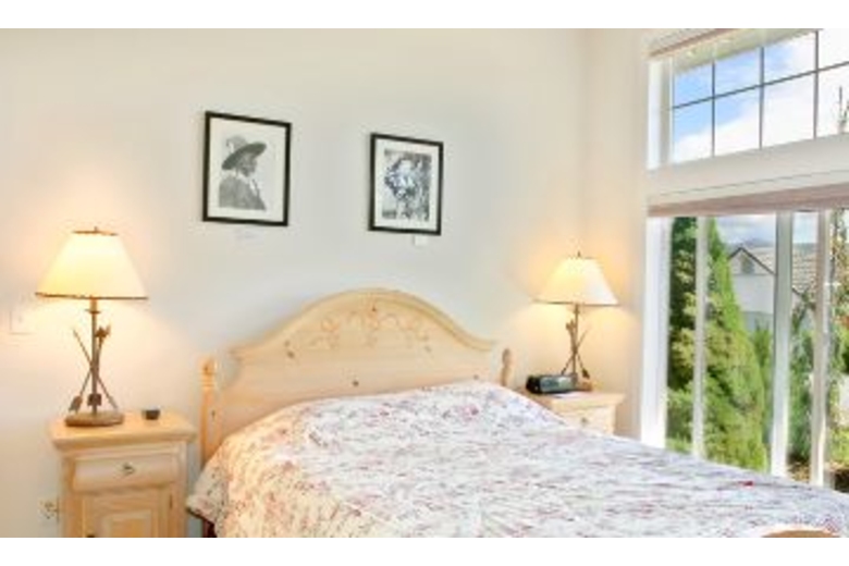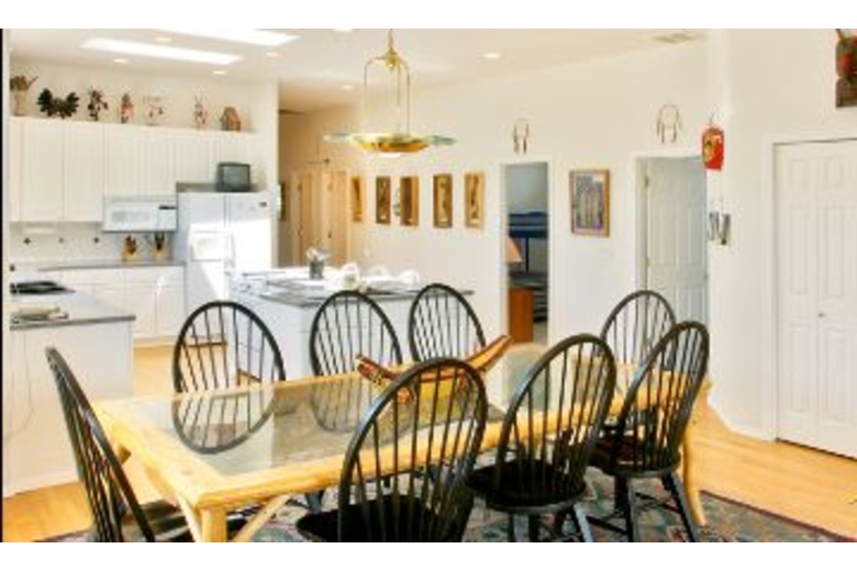 This home is 3,000 square feet and has a maximum occupancy of 11 people. Its four large bedrooms are all located on one level. The master bedroom has a luxurious queen sized bed. In the other three guestrooms, you will find another queen, a full and three twin sized beds. Plus, you can fold out the sleeper sofa for two more guests. This western home also offers both a living room and a den, each with its own TV and VCR, that way you can relax watching one program in the evening and the children can watch another. Why not make the evening perfect by making some popcorn for everyone in the open gourmet kitchen with its country tile table and state-of-the-art appliances. Deep carpeting and beautiful wood floors, as well as an impressive art collection, all make this home very special. Its bathrooms are large and sunlit with soft towels and a master whirlpool tub.Surrounding Description