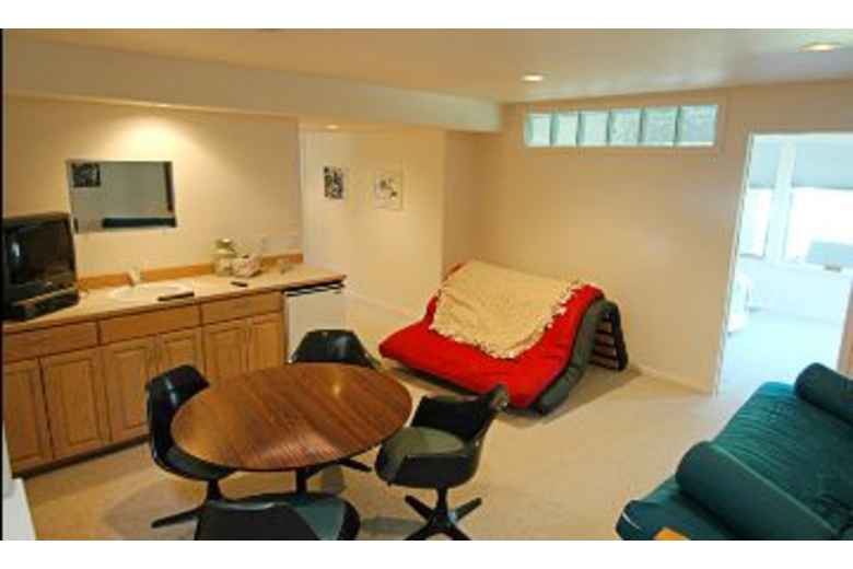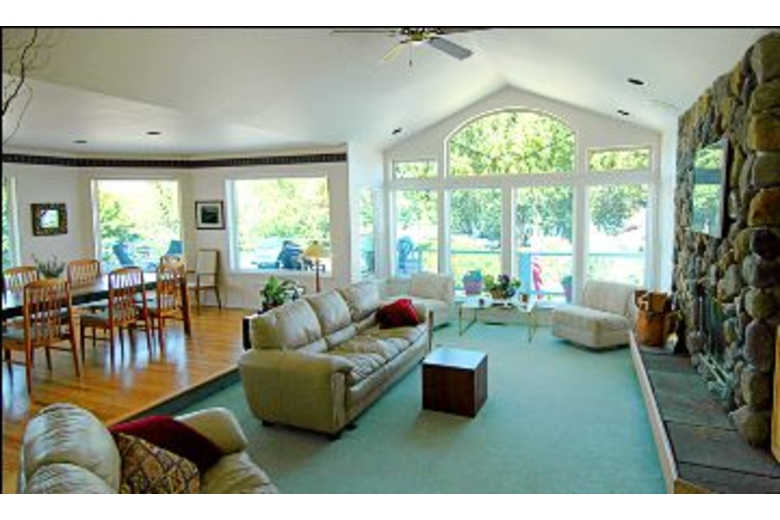 There are four bedrooms and three bathrooms in this home and it can sleep up to twelve people, which is great for large, extended and multiple family vacations. The beds in the home are as follows, there are four queen sized beds, one twin and a couple futon couches to fit all of your guests comfortably. In the open living area, you will find a beautiful fireplace with plenty of comfy seating for you and your guests to cozy up, play games, watch a movie, or talk and laugh about the day’s adventures. There is another living area in the basement with a TV and a wood burning stove, where you can send the kids to watch the movie they want. The kitchen is fully equipped with everything you need to make delicious home made meals. One of the best features of this house is the large deck overlooking the beach, with lots of comfortable patio furniture. It is a great place to spend the day watching the soothing water, basking in the sun or shade and enjoying the company of your guests.Surrounding Description