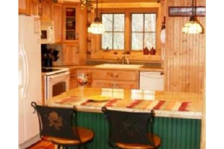 Our log model is air conditioned and has a gas fireplace in the great room. We have a deck overlooking the lake and a covered country porch with a swing and rocker that is a great place to read and enjoy your favorite beverage.