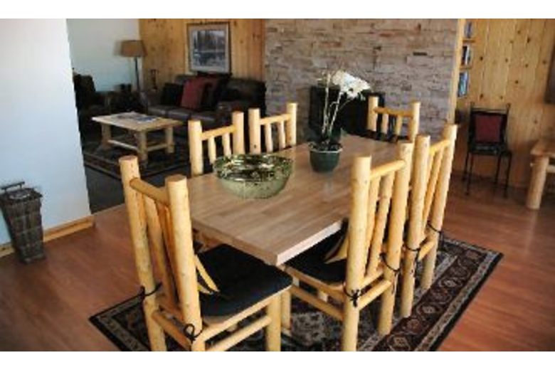 Enjoy a relaxing week with the family in this wonderful townhouse. The living area provides a cozy atmosphere and features a rock fireplace to keep you warm on those cold winter nights. The kitchen is fully equipped and the dining area offers a table with log frame chairs for eight people to enjoy a nice family dinner.This unit offers three bedrooms to assure your guests a peaceful rest. The first bedroom features a queen bed with Native American bedding and a sliding door leading out to the deck. The second bedroom features two twin beds in red bedding and moose pillows. The third room offers a bunk bed with a twin on top and double on bottom. To comfortably sleep one extra person, there is a twin sized sofa sleeper in the living area.Surrounding Description