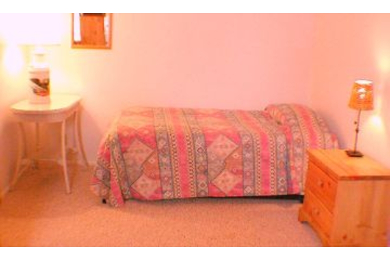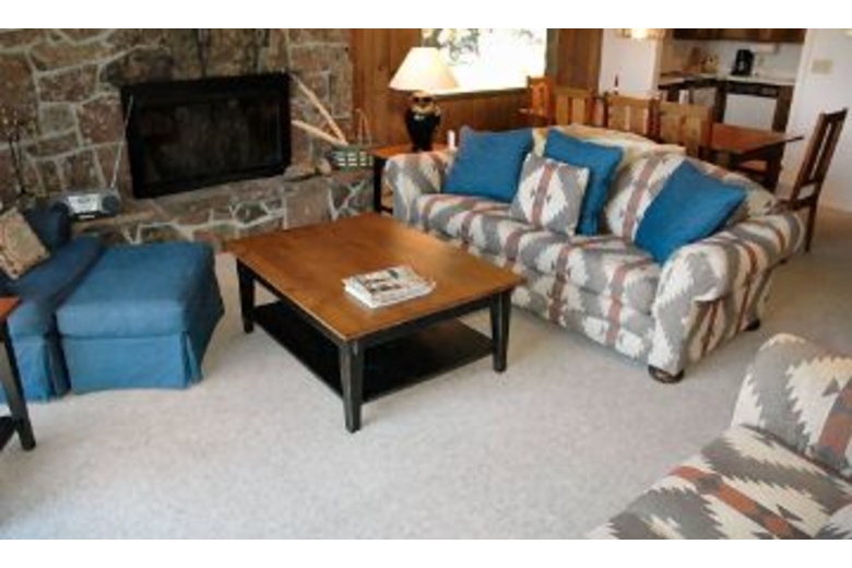 Enjoy this cozy three bedroom home with your family. The living area is decorated in a Native American theme and features a rock fireplace to warm your family up after a fun day on the slopes. The kitchen is fully equipped and features a breakfast bar. The dining area offers a beautiful dark wood table and bucket chairs for eight people.The master bedroom in this home features a cozy queen bed. The room offers a large mirrored closet and a bench at the foot of the bed to help you relax before settling down at night. The second room offers a pink queen bed. The third room features two twin beds in blue and white stripped bedding. For extra room, there is a sofa sleeper located in the living area.Surrounding Description