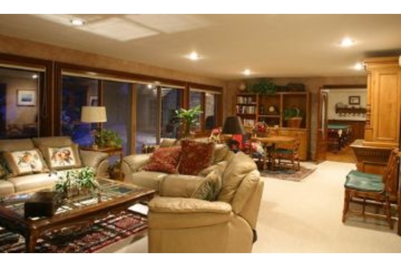 This rental home features five bedrooms, five and a half baths, gourmet kitchen with cathedral ceilings, huge wood-burning fireplace, cable TV and TIVO, Jacuzzi tub and steam shower, hot tub overlooking river, a gas fireplace in the living room, high-speed internet hook-up, fax machine/copier/printer/scanner, temperature-controlled wine closet, a pool table, large gas grill on patio and a trout pond.Surrounding Description