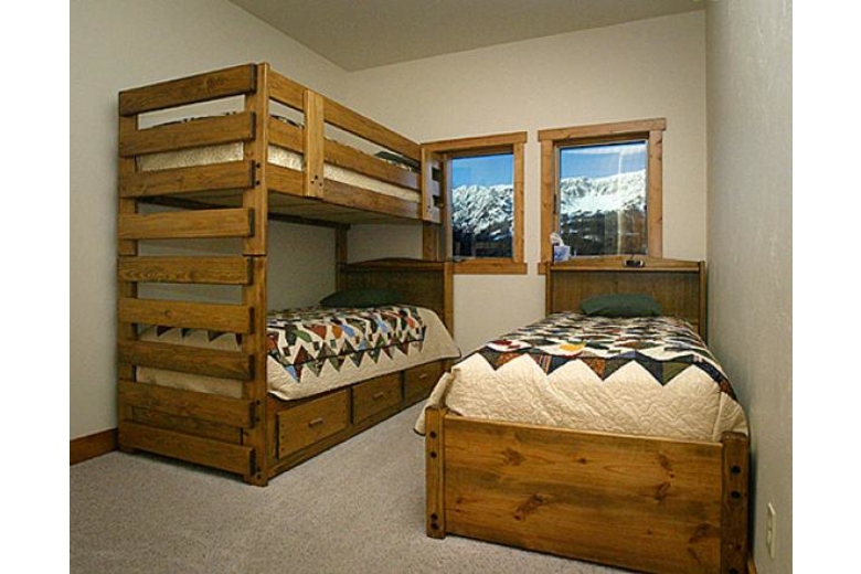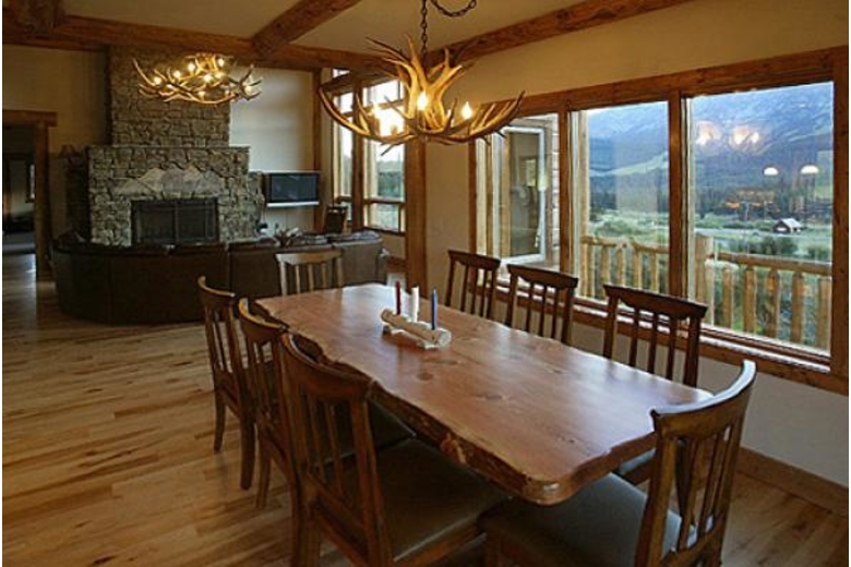 Situated in a serene, pristine and tranquil atmosphere and offering panoramic mountain views, Bridger Vista Family Lodge, our Bozeman vacation rental lodge is a perfect getaway home for you to spend a relaxed holiday along with your family or friends. This 4 bedroom lodge rental in Bozeman can comfortably accommodate up to 12 guests. The plush bedrooms are equipped with a California king-size bed, a queen-size bed, twin trundle bed and two bunk beds. There is a double sofa sleeper and a queen sofa sleeper as well. The bathrooms are well stocked with modern amenities. You will be delighted to use the fully equipped kitchen to cook your favorite recipes and there is a barbeque grill as well to host some wonderful cookouts. The dining room featuring an eight- foot custom log slab table with a deer horn chandelier. Our Bozeman, Montana vacation rental is wheel chair accessible as well. Our living room has a cable TV, satellite TV, DVD player and a CD stereo for you to gather over favorite movies and shows. There is a wood burning fireplace to spend some quality time with your group over your favored brews and beverages. This is a Bozeman pet friendly lodge so you can bring your furry friends. Relax on the deck with a piping cup of hot coffee and enjoy the splendid natural vistas. To surf the web or stay in touch via emails or chat, wireless Internet access is also available. While staying at our Bozeman vacation lodge, you will find ample opportunities to indulge in water sports and adventures including fishing, rafting, tubing, downhill skiing, cross country skiing, snow boarding, sledding, hiking, hunting, rock climbing, and mountain biking. Just a short scenic drive from this Bozeman lodge rental is the western town with great shopping, restaurants and entertainment including the Museum of the Rockies featuring a world-renowned dinosaur bone collection.