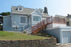 Beach view of home w/ private stairs to beach