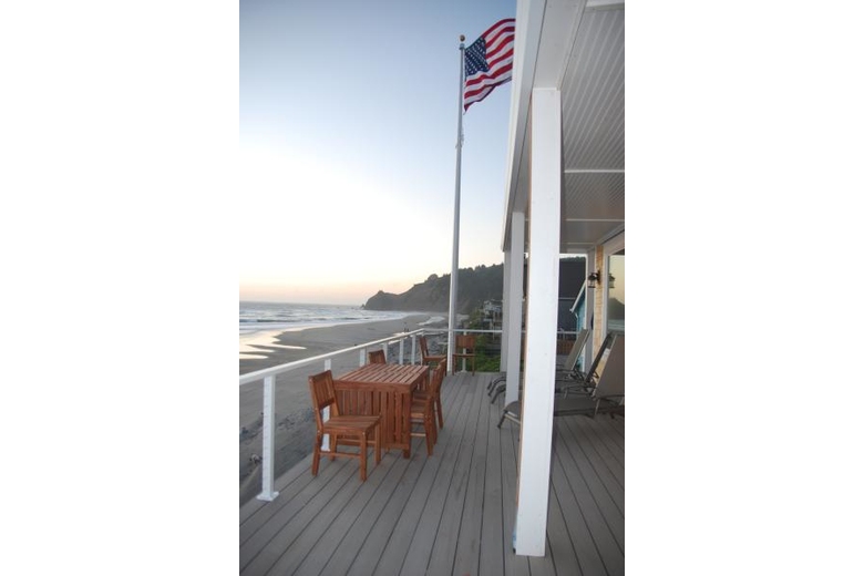 LAST MINUTE SUMMER OPENING @ DISCOUNTED RATE: JUNE 23,2010 (1 NT) Beautiful 3200sf "lodge-like" architecturally designed home in the heart of desirable Roads End in Lincoln City. Private stairs to the sand accessed from beautiful patio and two additional spacious decks overlooking the beach. Extensive wood interior with huge beams throughout the home, 2 large woodburning river rock fireplaces and expansive living areas on both floors, as well as extra wide hallways and stairways, all add to the spacious "lodge-like" feel of this beautiful home. Large kitchen with granite counter tops and island opens to indoor and outdoor dining and living areas - all with panoramic breathtaking ocean views. Large flat screen TV/DVD on both floors w/ Bose Theatre Sound System on main floor. New leather furniture and top of the line accomodations and amenities are provided throughout the home for your enjoyment and convenience.