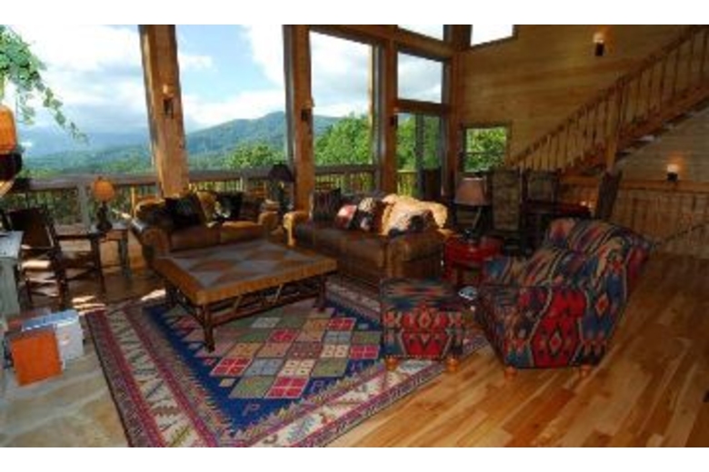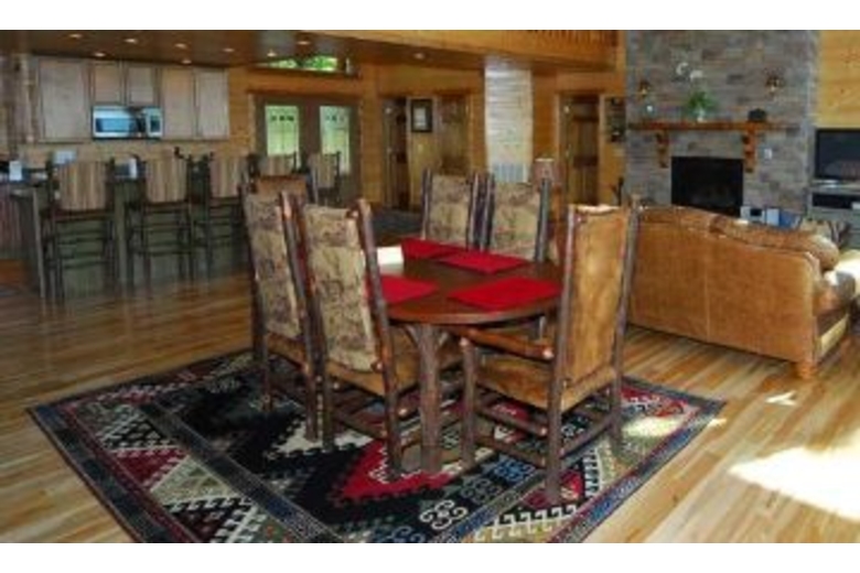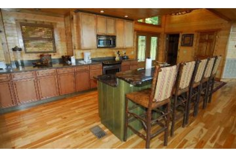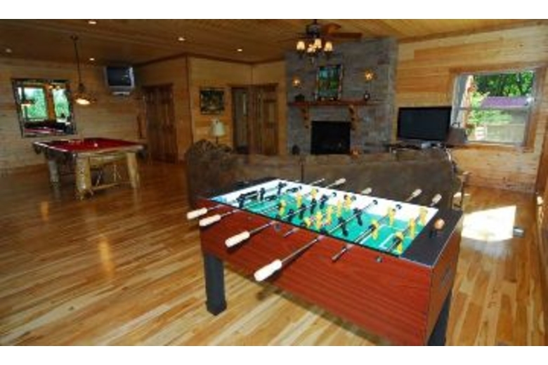 This five bedroom, five and half bathroom cabin is the perfect getaway spot. This house has a fully equipped kitchen, high speed Internet, two gas fireplaces, nine TVs, seven VCRs, seven DVD players, two stereos, pool table, foosball, air hockey, hot tub and swimming pool access.Surrounding Description