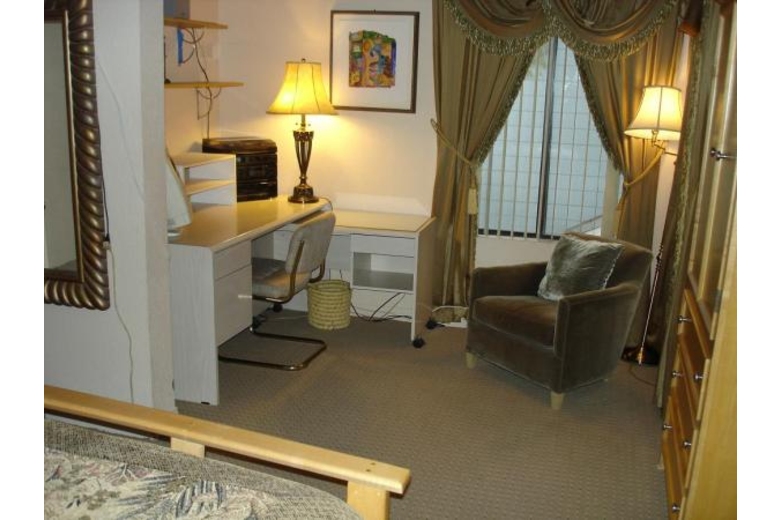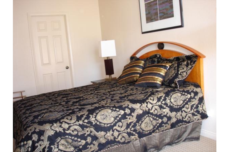 Exquisite townhouse located 3 miles west of the Strip in a gated community. Just move right in & enjoy your stay in Vegas away from the Strip, yet close to the action. Two large bedrooms, 2 ½ baths, sleeps 4 comfortably & accommodations for up to 6 persons. Linens & towels are provided. A fully stocked kitchen allows you to cook meals with a grocery store right across the street. Two car garage for privacy. High Speed internet and desks in each bedroom for your business needs. Flat screen TV, cable & stereo for entertainment & relaxation.