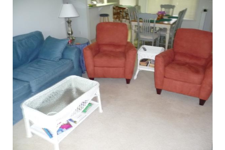 Our large living room contains a wood burning fireplace, cable TV, DVD player and queen-size sofa sleeper for your relaxation. The deck at this child friendly vacation townhouse in McCormick for 4 offers marvelous golf course views. You can also enjoy partial lake views from the deck.