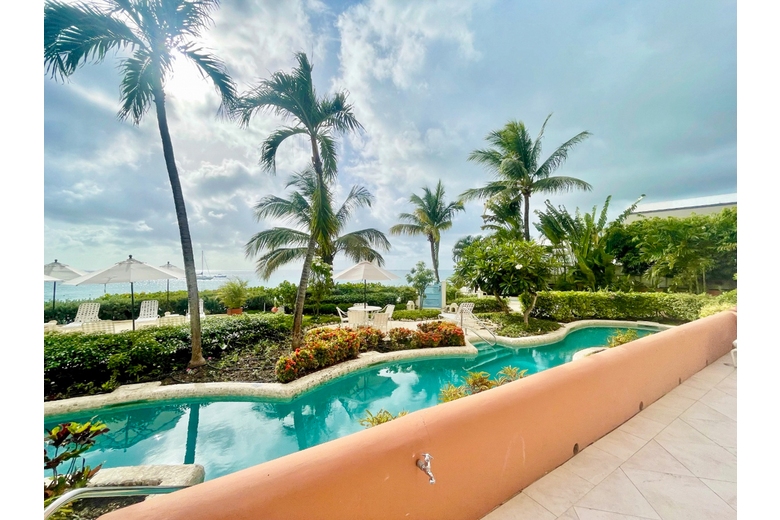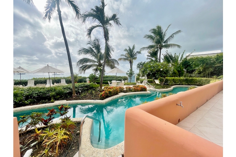 Villas on the Beach 103 Holetown patio by pool, Holetown, St. James