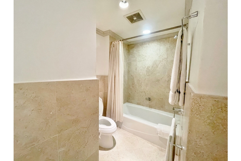 The Villa apartment 103 is fully air conditioned 2 bedrooms with ceiling fans throughout, en suite bathrooms, and a lovely member of staff who will help out with the cooking, cleaning and laundry to make your stay the best that it can be. In addition, guests of this apartment are also offered the use of the on-site members gym that is located in the basement.
