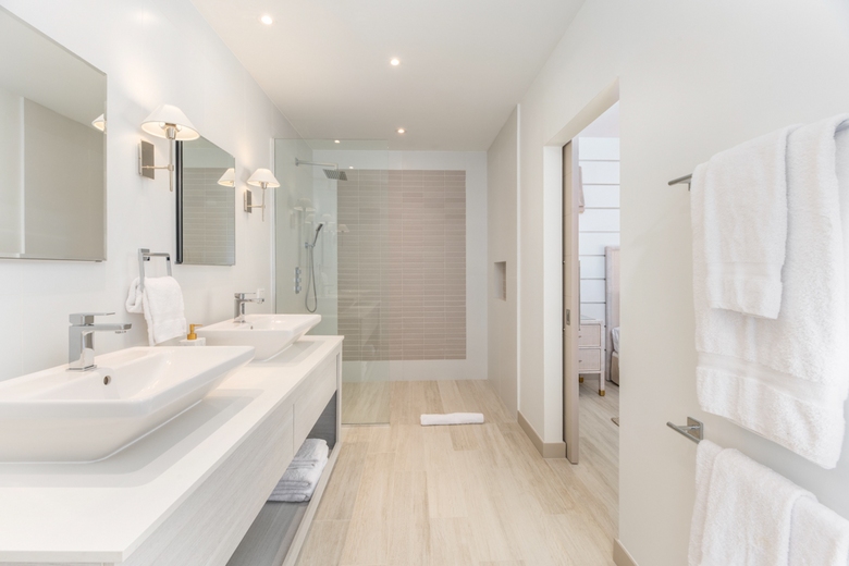 The Master suite showcases high-quality bed linen, and accessories that create a calming space. The master bathroom offers a double vanity, and a spacious walk-in shower.