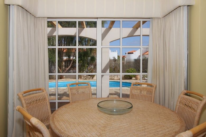 Canarian Dining Table looking out to Terrace & Pool