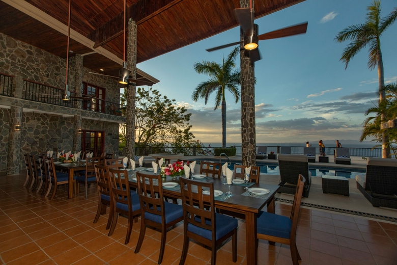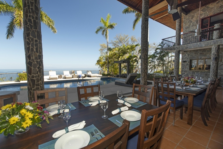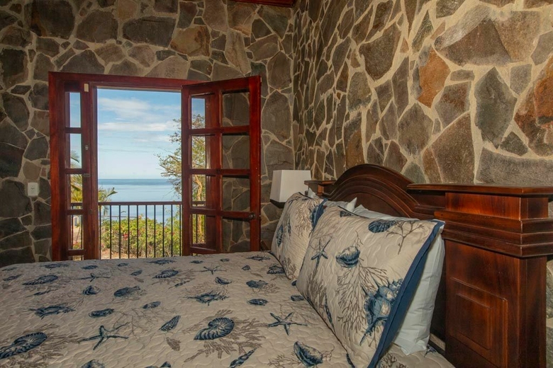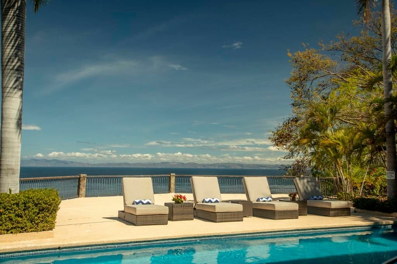 Villa Puesta del Sol is an all inclusive villa so there is no need for you to use the fully equipped kitchen. There is a TV for you to watch movies, sports events and music programs. The deck offers panoramic mountain and ocean views. The patio is perfect for lounging and lazing around. During your stay at this Playa Ocotal, Costa Rica vacation villa rental, you can also frolic in the private swimming pool or simply relax or sun-bathe by the poolside on the sun loungers. There is a private outdoor hot tub to soak in after a long fun-filled day. Other on-site amenities include car parking. Sorry, pets are not allowed inside.