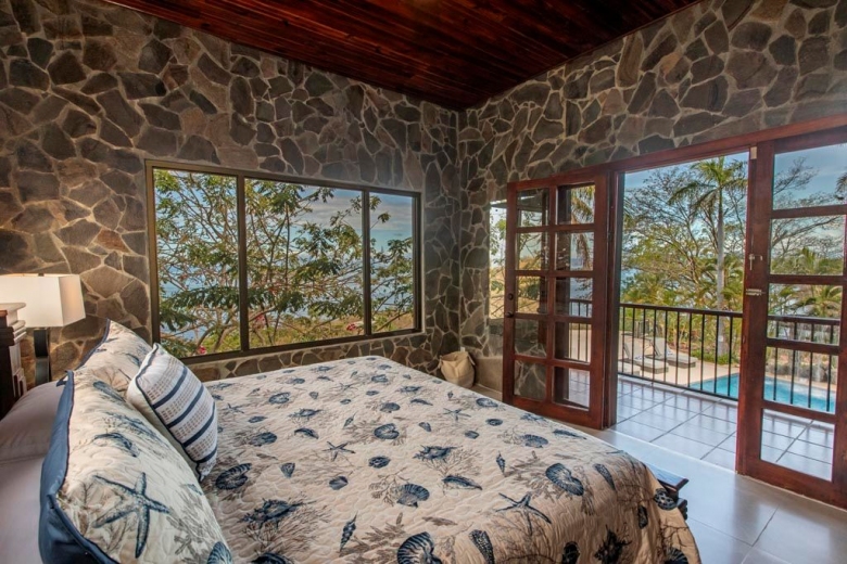Located in El Ocotal, Guanacaste Province, with panoramic views of the Pacific Ocean and Bay of Papagayo on the Northwest Pacific Coast of Costa Rica. Villa Puesta Del Sol, our professionally decorated Playa Ocotal vacation rental villa is an ideal getaway for a holiday with your family or friends. Perfect for a large family or two families or a group of friends wanting to holiday together, our 9 bedroom villa rental in Playa Ocotal can comfortably accommodate up to 20 adults and offers an all inclusive experience, cook, bartender and housekeeper, three meals, open bar, soft drinks and smoothies. Our bedrooms are well furnished and the bathrooms are well fitted with modern amenities.