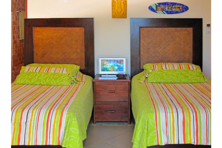 Villa Tranquila, a holiday rental villa in Dominical by owner is located in the southern Pacific costal region of Costa Rica. This beachfront villa is a perfect place to enjoy adventure and nature. Apart from offering spectacular vistas, the villa comes with a line of world class facilities and amenities for your convenience. Our vibrantly decorated 2 bedroom villa rental Dominical Costa Rica includes a king-size bed, two twin beda and a sofa sleeper for a comfortable stay of six vacationers. This Dominical villa rental for 4 is tropical in ambiance and rich with details. This is oceanfront luxury. The 2.5 bathrooms are well fitted with showers and bathtubs. The open living room of this private beachfront vacation villa rental in Dominical features facilities such as TV/DVD, cable TV, DVD player, video library, stereo and wireless Internet access for your inhouse entertainment. The living room is designed for those seeking peace amid nature and the ocean. The kitchen is fully equipped to facilitate your culinary needs. For the delight of sunbathers, there is a large balcony at our Dominical holiday villa with private pool. You can walk to the ocean to enjoy many beach activities. In addition, there are numerous shopping arcades and restaurants to enjoy outdoor eating and shopping sprees. To see more photos and video go to our villa's website. www.dominicaltranquila.dom