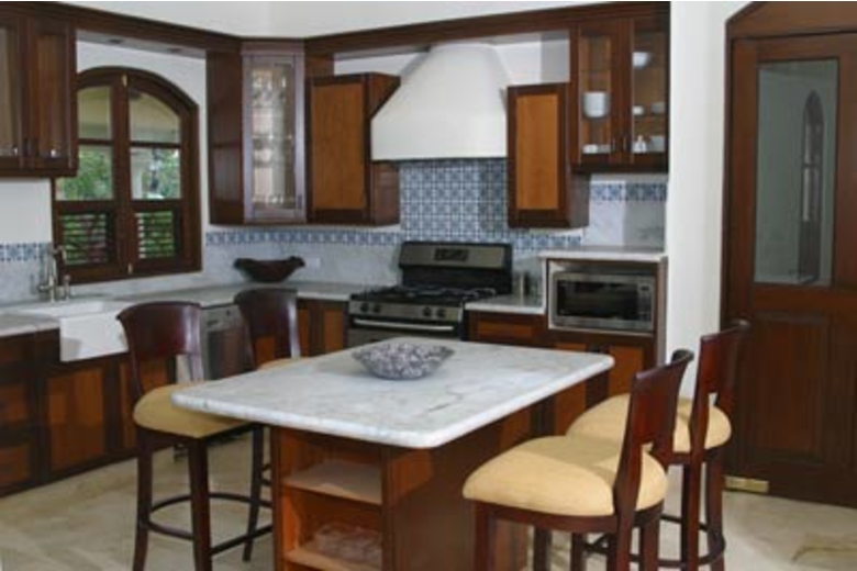 Built in 2005, this 5 bedroom, 5 bath villa boasts a perfect location just adjacent to the Beach Club area and beaches. Tuscan inspired architecture blends perfectly with Caribbean elegance with cream marble floors and baths and a large terrace for al fresco dining and entertaining. The gourmet kitchen, with blue vein marble and hard wood, is a dream for entertainers. Three bedrooms on the second floor, one with a king, one with a queen and the third with two twins. Two guest suites are on the ground floor, one with a king size bed and one with a queen bed. This villa is perfect for 2 families to enjoy two master bedrooms and vacation together with ample privacy. Guests love the top notch detailing like the wrought iron work, luxurious bathrooms, meticulously chosen furnishings and fixtures, large classic lap pool and cascade. Just second away from El Bosque restaurant, the beaches and the seaside pools, villa #72 promises luxury, fun and turquoise sea views.