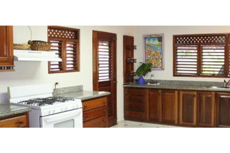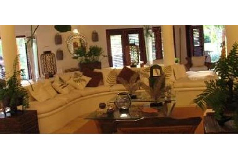 Villa Las Piñas - Precious Villa with 4 bedroom with complete baths and 5º on watch like reserve. In one of the dormitories there is an attic with another mattress with capacity for other two people. He owns then altogether, 5 complete baths and a Cleanliness of courtesy that this located in the ground floor. Impressive Vista from the three terraces inferiors to more than 10,000 m2 of gardens that form the 14 towns that form the zone of Pineapples, with all class of ornamental and fruit trees, such as guavas, avocados, soursops, handles, papayas (Lechozas), plataneras (Guinean)….etc. Conditioned air in the 4 main dormitories and the kitchen. Kitchen with refrigerator, stove of gas, microwaves, coffee pots… etc. Outer patio on watch with electrical washing machine and dryer. I deposit of gas. Formal dining room, ample hall, decorative TV with reproducer of DVD and CD, carpets, pictures… etc. Hard digital box, several TV' s in the dormitories, radios awakeners, telephone, service of Internet with Wi-fi available but does not free. Doors and windows of mahogany in all the house. Own swimming pool, and furthermore is a communal swimming pool that is property of the 14 towns of Pineapples that this located to about 20 meters of the town. Private cook and domestic servant. She understands English. Traditional kitchen or any food that you ask to him. Possibility of renting like extra a golf trolley to go to the beach, tennis, golf, the restaurants….etc. and to move by all the Resort.