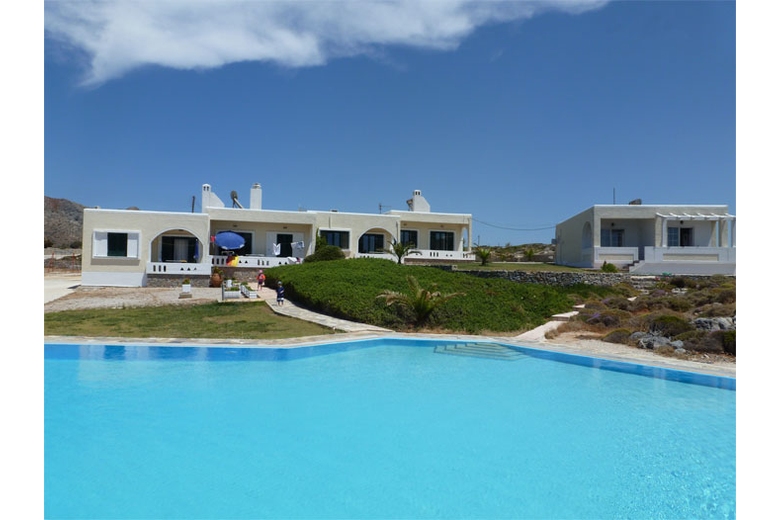 There are 2 one bedroom apartments of 40sq.m. They consist of one twin bedroom. On the sitting/dining area there is a sofa, a satellite TV and a dining table with chairs. At one side of the room there is an open plan kitchen, equipped with a 3 ring stove, oven, grill, fridge/freezer, coffee maker, toaster, squeezer and kitchenette.