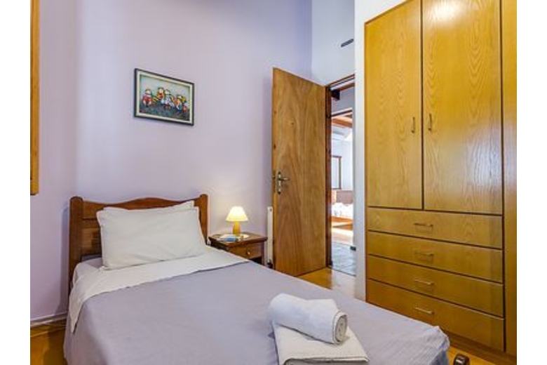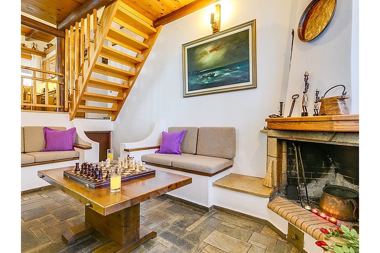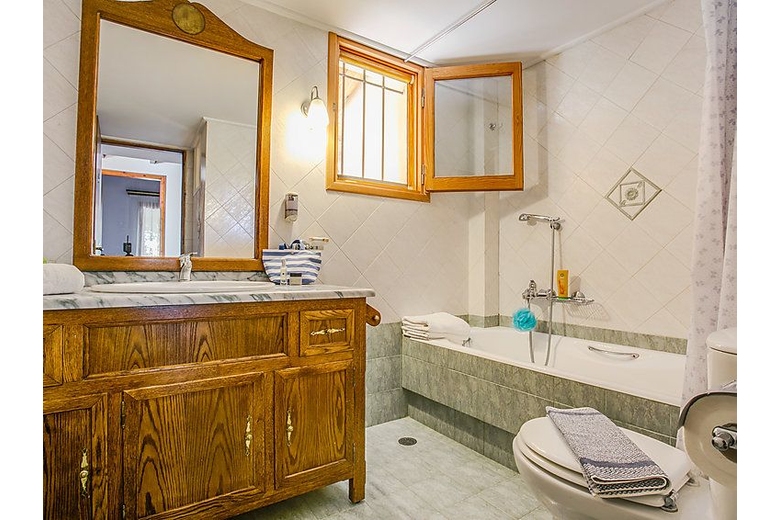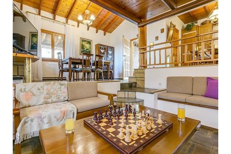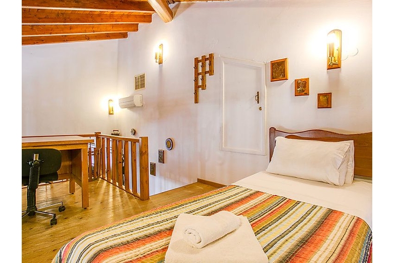 1 double bedroom, with (wardrobe), 1 double beds, TV air conditioning. 1, with 1 double beds, TV. 1 single bedroom, with 1 beds, with baby crib. Kitchen: Open kit. oven microwave freezer grill dining table toaster refrigerator, with air conditioning. Bathroom: 2 bathroom bath/WC shower/WC, hydro massage tub, Available soap shampoo paper towels. Upper floor: Open small office, open attic bedroom, with 1 beds