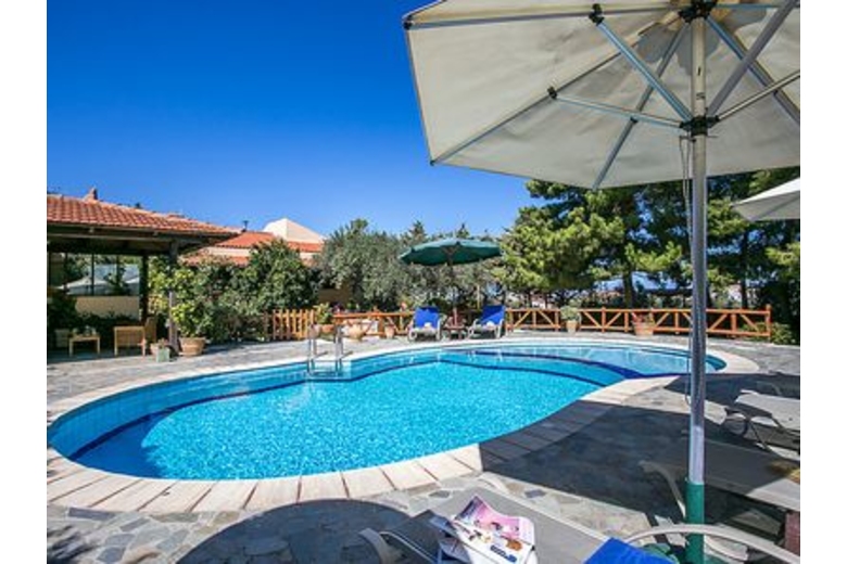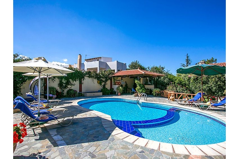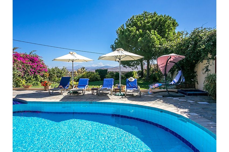 Agape Villa in Episkopi 9 km from Heraklion and beaches. Very beautiful garden in rural area, Agapi Villa is very spacious and comfortable villa with pool and terraced area, built in 2004 and recently renovated, surrounded by trees. Quiet sunny, 8 km from the beach, View: sea mountain village. Street address Episkopi. Shared: Private: Property 1000 m2, sun umbrellas, 1 swimming pool with privacy (44 m2, open from 01 04 to 31 10 ), patio, barbecue. In the house: with TV internet access WiFi, air conditioning, washing machine, bicycles.