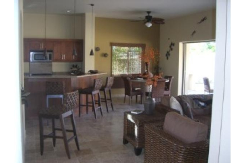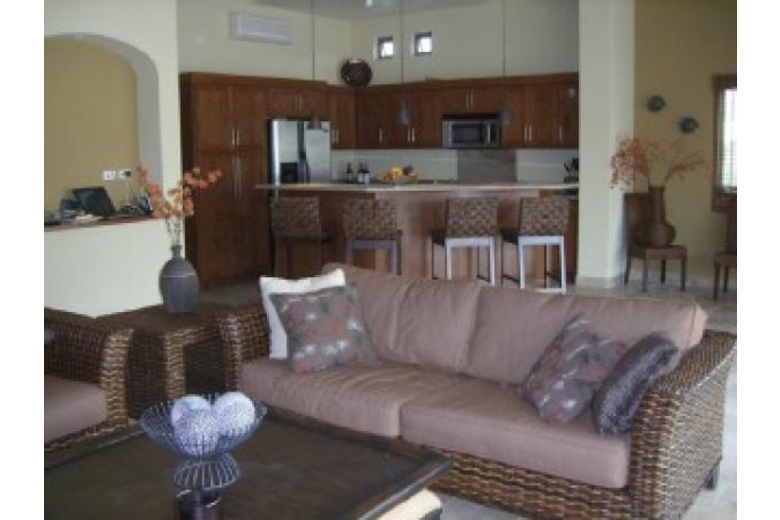The chic and sophisticatedly furnished living room of this San Jose del Cabo villa near beach offers panoramic views and facilities such as TV, cable TV, DVD player, VCR and CD/stereo for the entertainment of the entire family. The fully equipped kitchen will fulfill all your culinary desires.