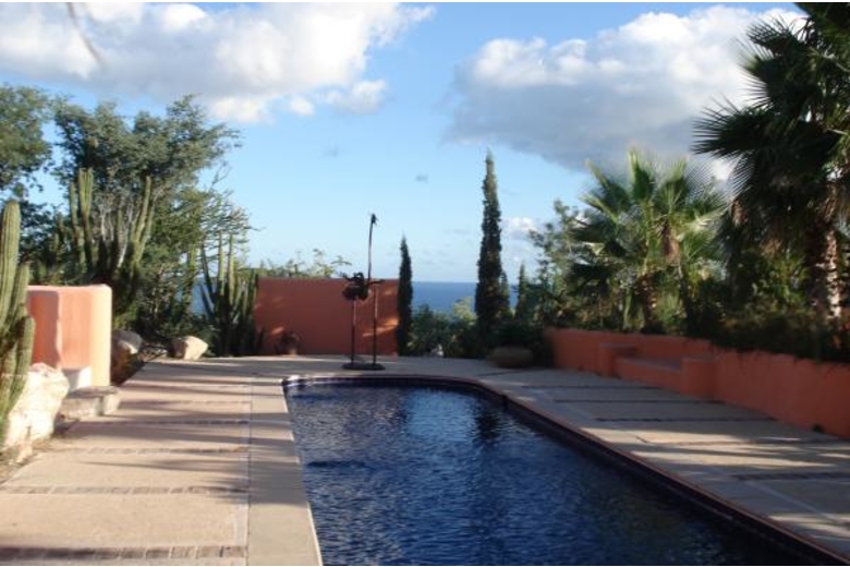 Hilltop Villa overlooking 5 miles of coastal beaches in Resort Corridor between San Jose and Cabo San Lucas, Mexico. This beautiful private retreat consists of a three bedroom home and separate Casita with full kitchen in a 2 acre walled compound that can comfortably accommodate up to eight people. A place to enjoy nature, outdoor activities and privacy with family and friends.
