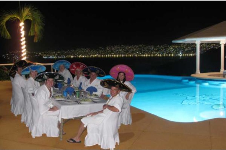 YOUR 5 STAR DREAM VACATION WITH BUTLERS, CHEF, MAIDS AND BARTENDERS! You will save a fortune on drinks and food as compared to staying in a hotel. WE BUY YOUR FOOD AND Drinks AT Walmart and Costco, SO YOU SAVE BIG Bucks; AND WITH THE PESO SO Cheap, ITS LIKE Getting A 40% Added Discount!. You will be amazed at how inexpensive it is to enjoy this luxury. Have your personal Butler bring your your drinks and lunch in your private pool overlooking the ocean. The prestigious Majestic Mansion is located in the world-renowned Las Brisas resort. This magnificent five-bedroom luxury villa is just a five minute walk to your semi-private beach cove. You will be mesmerized by the breathtaking bay and ocean views from each of the bedroom suites; which also feature their own private terrace from which to admire the beautiful sunset over Acapulco bay. Each of the grandiose air-conditioned bedroom suites has a spacious bathroom appointed with granite counter tops and imported fixtures. The Majestic Mansion has two master suites, each with king bed, and the “Royal Family Suite†has one king, one queen and one double bed which is perfect for the family with several young children. The Majestic Master penthouse suite contains a separate TV salon, tremendous bathroom with Jacuzzi and a king bed which is surrounded by glass for a panoramic view. Gume, your private butler, will serve you your favorite tropical cocktail while you are seated in the swim up infinity pool bar. You can enjoy your cappuccino and breakfast either on your private balcony or in the ‘Al Fresco’ breakfast dining area. For your formal evening meal, you are welcomed to dine in the air-conditioned, glass walled “Italian†dining salon. The furniture in this room is all hand carved and imported from Italy. After dinner, your most difficult decision will come when the magnificent sunset gives way to the millions of twinkling city lights and stars above. You can start the party at your private Mansion with the music from our hi-tech sound system, complete with satellite programming; or you can head to one of the many world renowned night clubs. Mansion guests will receive special VIP status at many of the clubs and Five Star restaurants due to the owner’s personal friendships with the owners of these establishments.The club scene in Acapulco is not to be missed. It’s a terrific way to listen to great music and meet new friends from all parts of the world. And if you happen to be single, this is the place to meet beautiful people looking for an international cultural exchange. During the day, we suggest you enjoy the many activities that Acapulco has to offer: golf - tennis - deep sea fishing - jet skiing - parasailing - scuba diving - sailing - bungee jumping - sky diving - riding horses or 4-wheelers on the beach.The Majestic Mansion is a five-minute drive to the best restaurants and nightclubs in Acapulco. The world famous “Senior Frogs†is nearby when you are ready to party like a local. When the night is over, you are an invited guest of the Las Brisas Club, where you can work out in a private gym, play tennis or swim at the beautiful clubhouse complex. The Majestic Mansion is a perfect location for your next family reunion,CORPORATE RETREAT or mixed couples vacation. The Majestic Mansion will accommodate up to 10 MATURE ADULTS and 6 children. This estate is not rented to spring break groups, or groups of guest under the age of 25. The Majestic Mansion’s owner makes this exquisite property available to a select clientele (for a limited number of weeks per year) to offset costs required to maintain the Mansion at a Five Star level.